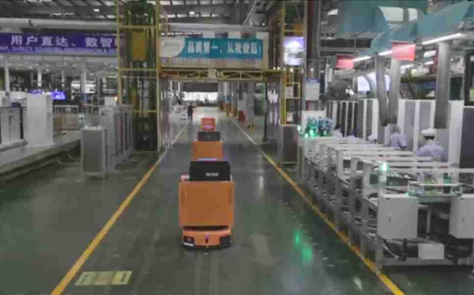 为车载冰箱物流配送打造的智能解决方案,,包含产中物流通过潜伏举升AMR搬运至线边,,,产后成品物流智能仓储,,,流程包含产中物流智能齐套入库,,,,线边安灯叫料AMR智能配送至线边,,成品入库、、、出库,,,通过无人堆高车机器人,,智能仓储管理替代人工作业管理,,,实现更高存储、、、、更高效率、、更具柔性化的解决方案。。。。